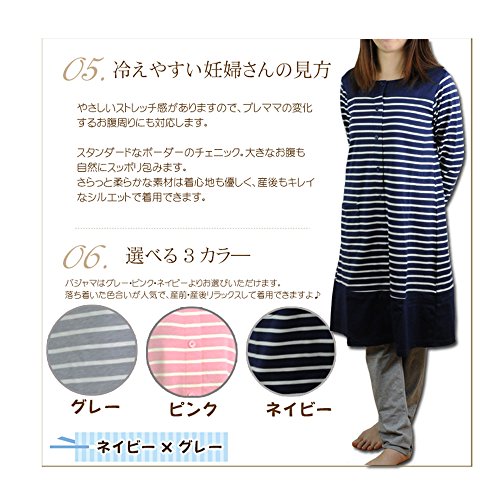 シルクル マタニティ パジャマ :前開き・長袖 チェック×無地切り替えマタニティパジャマ
