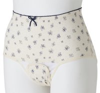 ナプキンが取り替えやすいクロッチ開閉タイプ。 花柄がかわいらしい、綿100%の肌ざわりのよい産褥ショーツ。 ウエストまである防水布は、幅広で安心。 しめつけないウエストゴムはおなかに直接あたらず、 ソフトな肌あたり。 ※着用目安※ 産褥期(産後の入院中~)