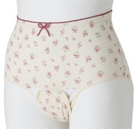 ナプキンが取り替えやすいクロッチ開閉タイプ。 花柄がかわいらしい、綿100%の肌ざわりのよい産褥ショーツ。 ウエストまである防水布は、幅広で安心。 しめつけないウエストゴムはおなかに直接あたらず、 ソフトな肌あたり。 ※着用目安※ 産褥期(産後の入院中~)