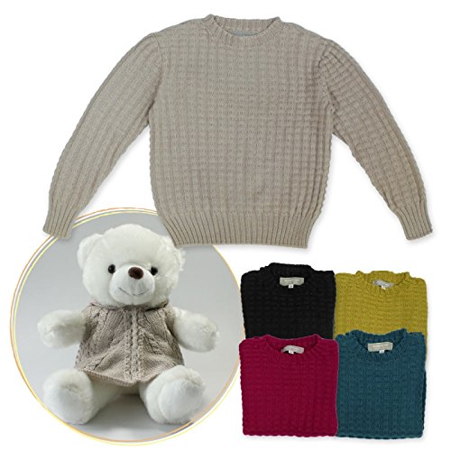 どこにも継ぎ目がないニット(ホールガーメント)は安心な日本製で、ごわつきがなく、着心地がスッキリしているので、アクティブな子供にとっては最適なニットです。チェック模様のように縫い上げているのがおしゃれで、カラーバリエーションも豊富!男女問わずに着せることができます。どんなボトムでもコーディネートに困らない、1枚あれば着回しに便利なシンプルニットです。ママはおじいちゃんおばあちゃんへおねだりしたくなるニット!おじいちゃんおばあちゃんはお孫さんへプレゼントしたくなるニット!お子様は、可愛いクマちゃんのぬいぐるみとお揃いのニット!みんなの思いが叶えられる素敵なニットはいかがですか?■身長サイズ:100/95-105cm、110/105-115cm、120/115-125cm、130/125-135cm■身巾サイズ:100/33cm、110/35cm、120/37cm、130cm/39cm■着丈:100/38.5cm、110/41cm、120/43.5cm、130/47cm■袖丈:100/34cm、110/39cm、120/41cm、130/45cm■クマのぬいぐるみのサイズ:高さ20×奥行20×幅20cm(座った状態でのサイズです)■素材:ウール50%、アクリル50%■本体重量:100/132g、110/149g、120/170g、130/189g■取り扱い注意:水洗いはお避け下さい。洗濯はドライクリーニングをおすすめします。■原産国:日本(Made in Japan)