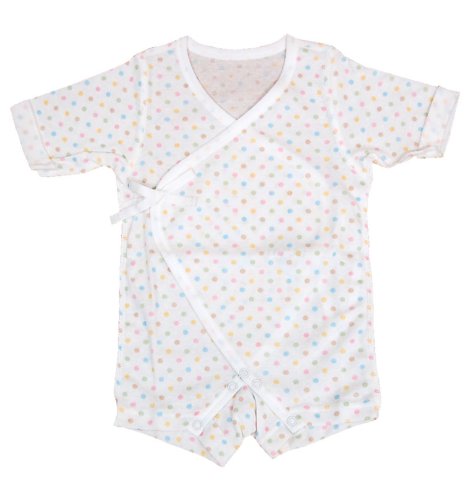 赤ちゃんには『心地よく』て『可愛い』お母さんには『着せやすい』、単純だけど大切なことをこだわって作られています。 ヒモは、腕の上下に負担のかからない、そして着くずれない位置についています。 赤ちゃんがますますかわいくなる丸みのあるカッティングで肩傾斜にピッタリフィットして腕の上下運動がらくらくです。 縫い目は表側に、縫い合わせ目は「フラットシーマ(特殊ミシン)」を使用し、肌に優しい縫いにしました。 吸湿性、通気性にすぐれ、肌触りも抜群の最高級長綿を使用しています。伸縮性のあるフライス生地ですので動きやすく、股の部分はスナップ式なのでおむつ替えも簡単♪
