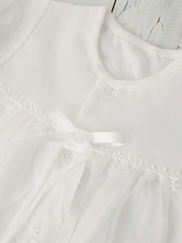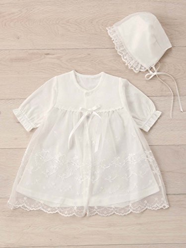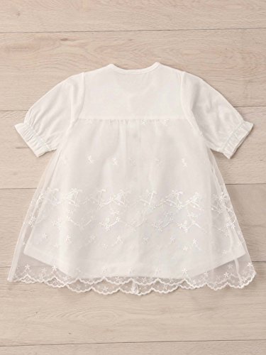 - ●【安心な日本製。特別な日、大切な日に愛らしいドレスで包んで】胸元のリボンと裾に広がるレースがなんとも可愛らしく本体のドレスは股ボタンの付け替えで、 新生児期は筒型ドレスとして、乳児期はカバーオールとして、 2wayに使っていただけるドレスオールタイプです。特別な日、大切な日に愛らしいドレスで包んであげてください。涼しげなシルエットと素材の夏生まれ赤ちゃんの正装スタイルです。