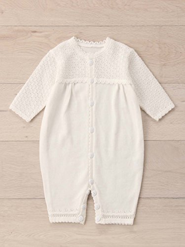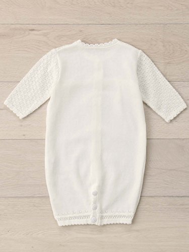 - ●【特別な日、大切な日に愛らしいドレスでお披露目】袖と胸元に編み込んだニットレースが、可愛さを引きたてます。肌にしっとり馴染み、軽やかな着心地。特別な日、大切な日に愛らしいドレスで包んであげてください。真冬以外のオールシーズンでお使いいただけます。