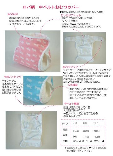 布おむつカバー 中ベルトタイプ ロバ柄 (ピンク/サイズ80)