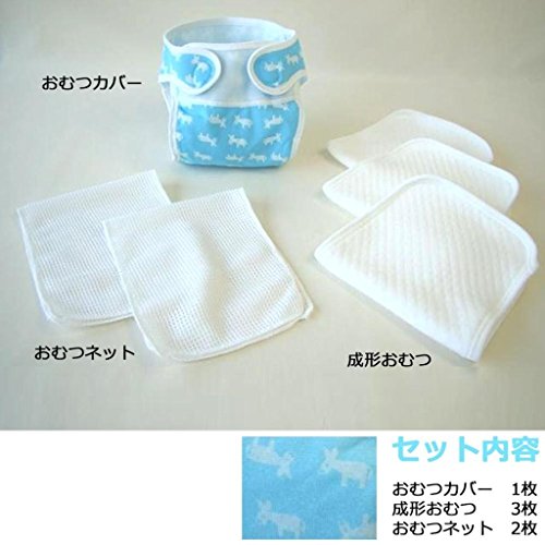 日本製 布オムツ&おむつカバーお試しセット ロバ柄 ブルー 60cm