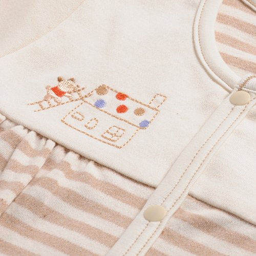 - 股のスナップの付け替えで、ドレスとカバーオールの2ウェイで使えます。