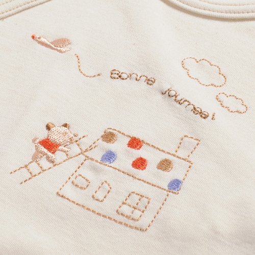 10か月の間温かい「おかあさんのおなか」で過ごした赤ちゃんにとっては環境の変化と冒険の毎日です。お母さんの肌に触れることでその柔らかさに安心し、たくさん眠ることができます。赤ちゃんは肌に触れることで驚くほど多くのことを吸収していくんですね!オーガニックコットンはふわふわやわらかい肌触りなので赤ちゃんの肌を優しく包んでくれます。お洗濯をしても真綿の風合いが持続しますよ!