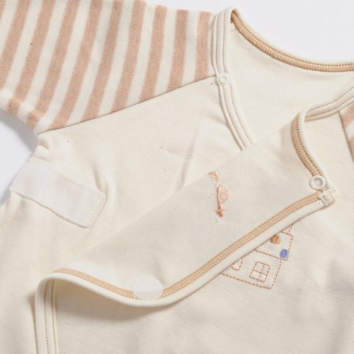 - 手首足首しっかりリブ使いなのでまくれあがりません。手足を活発に動かす赤ちゃんのために伸縮性の高いスムース素材採用。