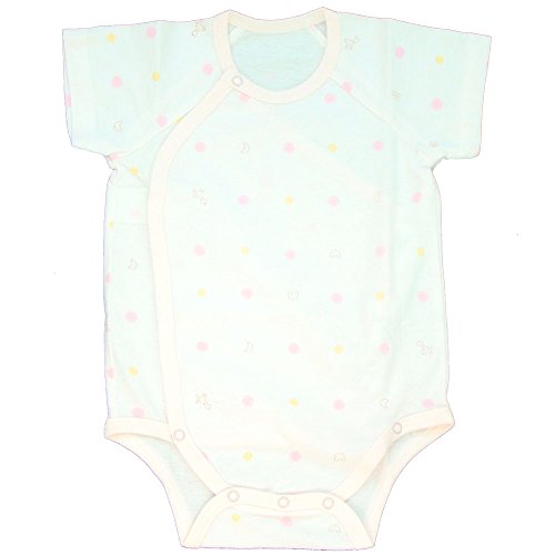 • ねんねの頃の赤ちゃんに着せやすい前開きタイプのボディウエアです。