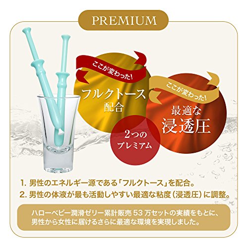 国内生産の潤滑ゼリーです。日本国内でしっかりと管理・製造を行っている「メイド・イン・ジャパン」の製品です。 さらに精子が女性に届くまでの最適な環境を実現させる「フルクトース」を配合させたプレミアムシリーズ。 また、精子が最も活動しやすい最適な粘度(浸透圧)に調整しています。準備はたったの1分。使い切りタイプなので衛生的、毎回新しいものをお使いいただけます。