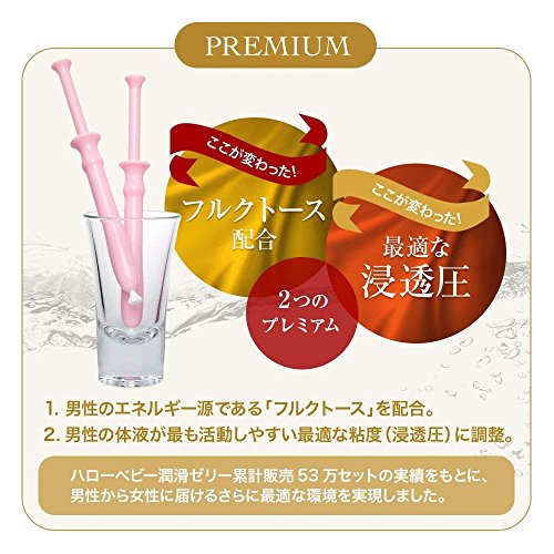 国内生産の潤滑ゼリーです。日本国内でしっかりと管理・製造を行っている「メイド・イン・ジャパン」の製品です。 さらに精子が女性に届くまでの最適な環境を実現させる「フルクトース」を配合させたプレミアムシリーズ。 また、精子が最も活動しやすい最適な粘度(浸透圧)に調整しています。準備はたったの1分。使い切りタイプなので衛生的、毎回新しいものをお使いいただけます。