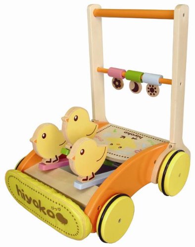 ヒヨコの木製押し車! 押すとカタカタ鳴るかわいいヒヨコたちがあんよのお手伝い!