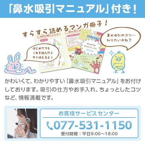 - パワフルな吸引力!耳鼻科や小児科での鼻水吸引をご家庭で行うことができます。ネバネバした鼻水もしっかり吸引し、鼻水がのどに流れて咳や痰が出たり、耳に流れて中耳炎になるのを予防することができます。