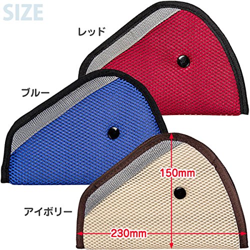仕様 本体カラー:3色展開 ※モニターの環境によりカラーは若干異なって見えることがあります。 装着時のサイズ:約230mm×150mm 素材:表面:ポリエステル100%/内クッション:PVC(ポリ塩化ビニール)100% ご注意 ※乗車姿勢をサポートするもので、急ブレーキや 緊急時の安全装置ではございません。 使用時は、製品自体の劣化や、ボタンの外れ等を確認の上ご使用ください。 本製品を用いてもシートベルトが首にかかってしまう場合はご使用をお控えください。 ※洗濯は中性洗剤で手洗いしてください。多少色落ちすることがあります。