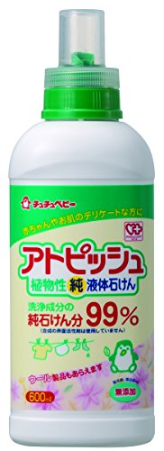 ●【商品説明】●「チュチュベビー アトピッシュ 植物性純液体石けん 600ml」は、赤ちゃんのデリケートな肌や衣類にも安心な植物性油脂の液体石けんです。●洗浄成分の純石けん分が99%で、蛍光剤・香料・色素・酸化防止剤・漂白剤などの助剤は使用していません。●石けんの溶け残りがなく、木綿の肌着、おむつ、タオル、ウールまでソフトにふっくら洗い上げます。●1回8.5ml、70回分入り(つけおき洗い)。●【成分】●純石けん分(30%脂肪酸カリウム)、安定化剤、アルカリ剤●まとめ買いの場合、システムの仕様で個数分の送料が加算される場合がありますが、送料は1配送先につき1個分の金額となります。●システムの仕様で配達日を指定出来る場合がありますが、配達日の指定は出来ませんのでご了承ください。尚、時間指定は出来ます。●ご注文確定後のキャンセルならびに、お届けしました商品のお客様都合による「返品 交換」は行っておりません。