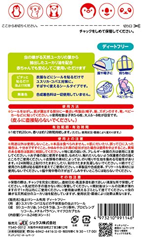 シールを貼るだけで不快害虫から守る。 ピタッと貼るだけ12時間 24枚入り 6種のイラストシール入り ベビーカー、靴、服、防止、持ち物に