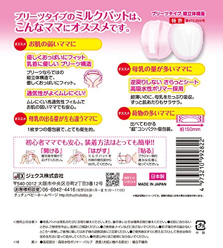 ●【商品説明】●「チュチュベビー ミルクパット プリーツタイプ 90枚入」は、表面性の大きいプリーツタイプでたっぷり吸収できる母乳パッドです。●プリーツならではの立体構造はプリーツを左右に広げ立体感を作りやさしくおっぱいにフィットします。●さらにダブルテープで漏れを防ぎ、高通気性フィルムが母乳をたっぷり吸収して逆戻りしません。●個包装を広げ、パットをはがし、ブラジャーにペタッと貼るだけと取付けも簡単。●個包装はコンパクトで持ち運びに便利です。● ●まとめ買いの場合、システムの仕様で個数分の送料が加算される場合がありますが、送料は1配送先につき1個分の金額となります。●システムの仕様で配達日を指定出来る場合がありますが、配達日の指定は出来ませんのでご了承ください。尚、時間指定は出来ます。●ご注文確定後のキャンセルならびに、お届けしました商品のお客様都合による「返品 交換」は行っておりません。
