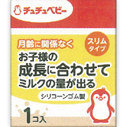 ●【商品説明】●「チュチュベビー 乳首 シリコーンゴム製 スリムタイプ 1コ入」は、月齢に関係なくお子様の成長に合わせてミルクの量が出る、チュチュベビースリムタイプ哺乳びん専用のシリコーンゴム製乳首です。●スーパークロスカット乳孔を採用し、吸う力に応じてミルクの出方をコントロールするため、S・M・Lのサイズを変える必要がありません。●離乳期までワンサイズでご使用いただけます。●ふだんはピッタリ閉じているため、たおしてもミルクがこぼれず、安全・清潔です。●びん内の圧力を一定に保つ空気弁なので、キャップ調節が不要です。●シリコーンゴム製なのでじょうぶで長持ち。●くりかえし使っても安心です。●【使用方法】●【はじめて使うとき】必ず洗浄・消毒してください。●ご使用前に付属のニップルケアでお手入れしてください。●【ご使用後】すぐにぬるま湯につけ、哺乳びん用洗剤などで洗浄します。●乳首先端・空気弁を軽くもみ洗いし、煮沸・薬液消毒等をおこなってください。●※空気弁がつまると、乳首のつぶれやびん内への飛び込みなどの原因になります。●【洗浄後・ご使用前】まれに乳孔・空気弁が乳...