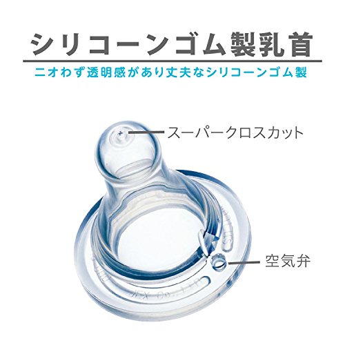 ●【商品説明】●ワンサイズでOK!スーパークロスカット乳孔。●シリコーンゴム製・・・じょうぶで長持ち。●くりかえし使っても安心です。●スーパークロスカット・・・たおしてもこぼれないスーパークロスカット乳孔・中央部のスーパークロスカット、ふだんはピッタリ閉じています。●・くわえる力と吸う力で、穴の形に開きます。●・赤ちゃんのあごや口の自然な発達を助けます。●・ミルクがこぼれず安全で清潔。●赤ちゃんが吸わない限り、乳孔も空気弁もピッタリ閉じていますから、赤ちゃんの顔にかかったり、うっかりたおしてシーツを汚すようなことがありません。●・ムセにくいから安心。●吸う力に応じてミルクの出方をコントロール。●出過ぎてムセたり、こぼしたりしにくい構造です。●・S・M・Lと変える必要はありません。●吸う力に応じて乳孔の開き方が変化しますから、新生児から離乳期まで1種類でOKです。●空気弁・・・びん内の圧力を一定に保つのでキャップ調節がいりません。●まとめ買いの場合、システムの仕様で個数分の送料が加算される場合がありますが、送料は1配送先につき1個分の金額となります。●シス...