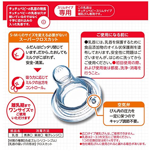 チュチュベビー 哺乳びん用乳首 シリコーンゴム製 スリムタイプ 3個入り 0歳~離乳期までワンサイズでOK!