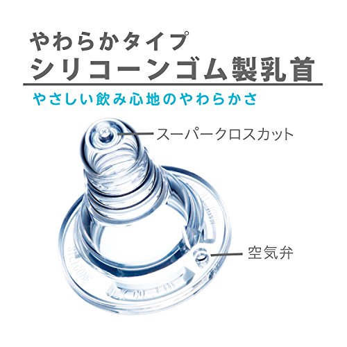 ●【商品説明】●たおしても、こぼれない。●スーパークロスカット乳孔●赤ちゃんがくわえると穴が開き、吸う力によってミルクの出方を調節。●離乳期までサイズ変更(S・M・L)がいりません。●びん内の圧力を一定に保つのでキャップ調節がいりません。●特殊なシリコーンゴム製でやわらかい上、じょうぶで長持ち。●くりかえし使っても安心です。●生まれたてのすぐの赤ちゃんにも安心してご使用いただけます。●まとめ買いの場合、システムの仕様で個数分の送料が加算される場合がありますが、送料は1配送先につき1個分の金額となります。●システムの仕様で配達日を指定出来る場合がありますが、配達日の指定は出来ませんのでご了承ください。●ご注文確定後のキャンセルならびに、お届けしました商品のお客様都合による「返品 交換」は行っておりません。