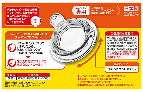 ●【商品説明】●「チュチュベビー 乳首 ミッフィー広口タイプ シリコーンゴム製 1個入り」は、吸う力によってミルクの出方をコントロールできるスーパークロスカット乳孔を採用した乳首 シリコンゴムです。●透明感があり、丈夫なシリコーンゴム製。●S・M・Lと変える必要がありません。●キャップによる空気調節は不要です。●倒してもこぼれません。●赤ちゃんのあごや口の、自然な発達をサポートします。●【ご注意】●使用後は必ず洗浄し、直射日光のあたらない清潔で高温にならない場所に保管してください。●【品質表示】●材質の種類:合成ゴム(シリコーンゴム)●乳首の吸い穴の形状:クロスカット●【原産国】●日本●【お問い合わせ先】●ジェクス株式会社お客様相談室 TEL:06-6942-4416●まとめ買いの場合、システムの仕様で個数分の送料が加算される場合がありますが、送料は1配送先につき1個分の金額となります。●システムの仕様で配達日を指定出来る場合がありますが、配達日の指定は出来ませんのでご了承ください。尚、時間指定は出来ます。●ご注文確定後のキャンセルならびに、お届けし...