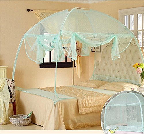 蚊帳 ワンタッチ式 テント型 底付き ベッドに収まる 折り畳み 三つドア設計 虫蚊対策 (1.8m ベッド用, ライトグリーン)