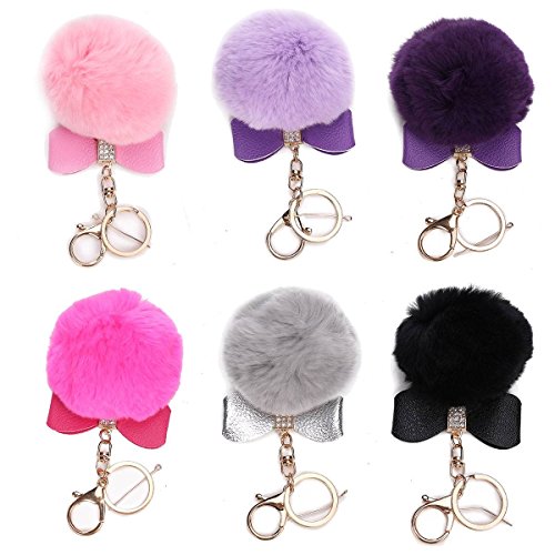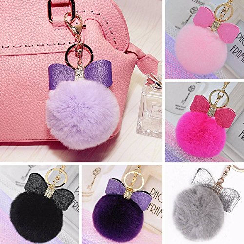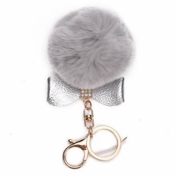 ちょう結びファーボールふわふわエレガントなハンドバッグチャーム 車のキーリングキーチェーン (グレー)