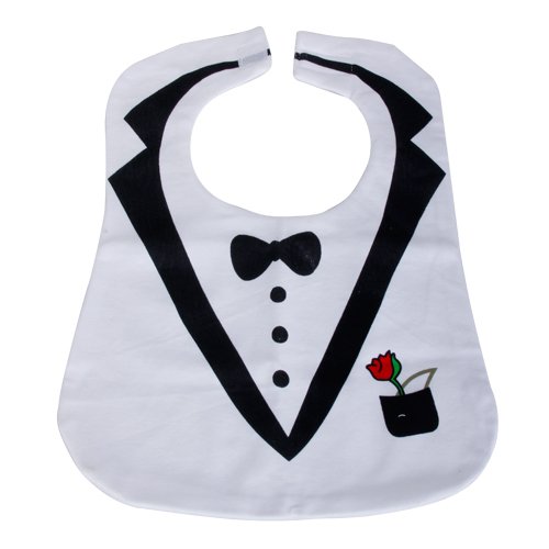 このよだれかけはかわいいタキシードパターンでパーソナライズされています。それは、よだれや流出から保護赤ちゃんの服を保つのを助けることができる。