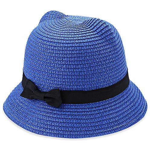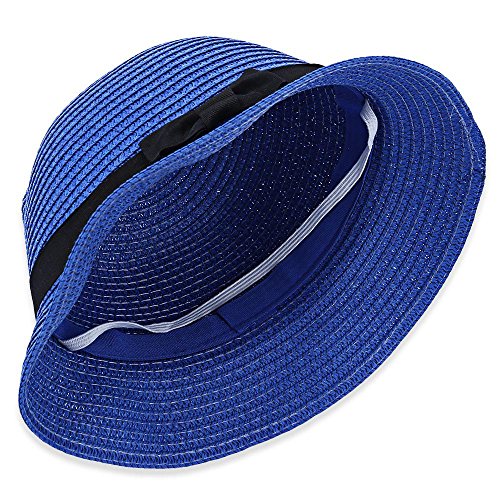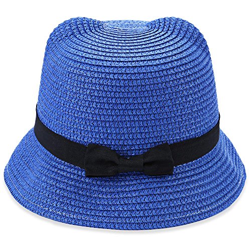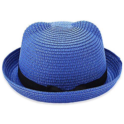 ちょう結びの円形ソリッドカラー子供の帽子 (青)