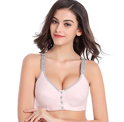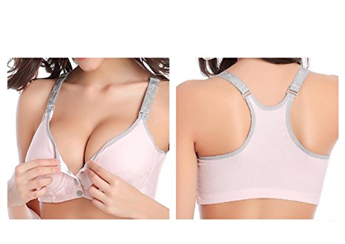 マタニティブラ 前開き授乳ブラ ホック 綿 (M, ピンク)