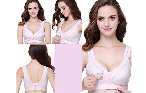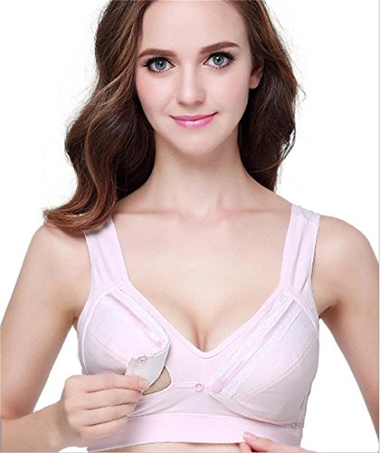 マタニティブラ ハーフトップ ボタン式で前開き授乳ブラ リムなし 綿(5色) (XXL(90A-90D), ピンク)