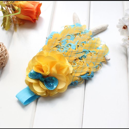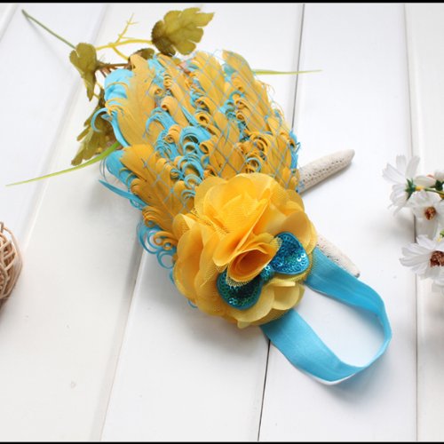 ベビー キッズ カチューシャ ヘアアクセサリー ヘアバンド 羽 花 髪飾り かわいい 黄+青