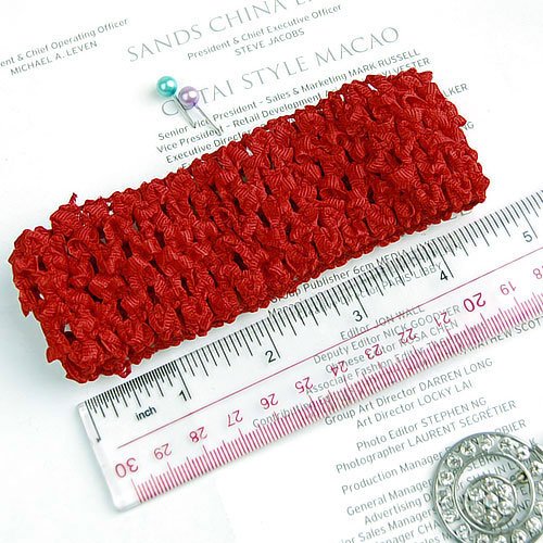 ベビー キッズ カチューシャ ヘアアクセサリー ヘアバンド 通気性 髪飾り かわいい 針編み 弾性 DIY 手作り 14x4cm (赤)