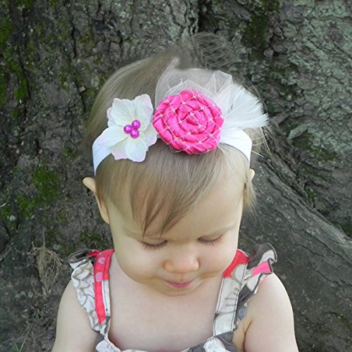 ベビー キッズ カチューシャ ヘアアクセサリー ヘアバンド 花 羽 髪飾り かわいい ホワイト+ホットピンク