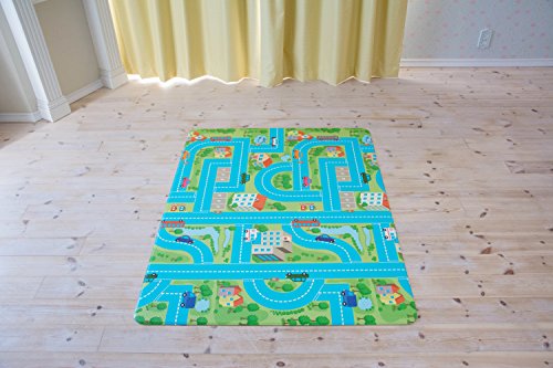 やわらかはいはいマットS シティーロード柄 (105x135cm)厚さ0.8cm プレイマット、遊びマット、キッズマット、フロアマット、リビングマット、防音マット