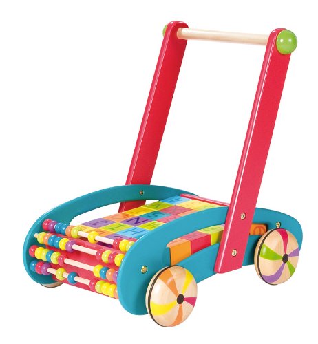 30個の積み木と正面の数え遊びがセットになった押し車です。