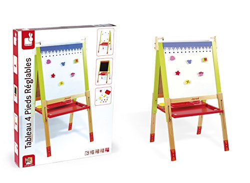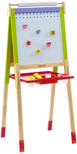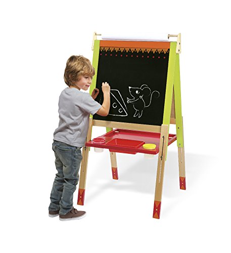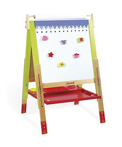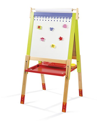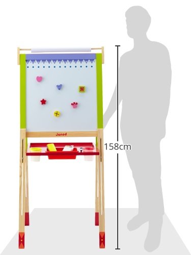 ◎製品寸法:L600×W550×H1300mm ◎対象年齢:3歳~ ●カラフルな対面式のお絵かきボード。 ●表側はホワイトボード、裏側は黒板になっています。 ●ホワイトボードへ画用紙などをマグネットで固定して使用します。 (紙が厚すぎるとマグネットで保持できない場合があります。) ●脚の高さをネジで調節できます。 ●文字消し用フェルト付きホワイトボード用ペン、チョーク、 黒板消し、マグネットが付属。