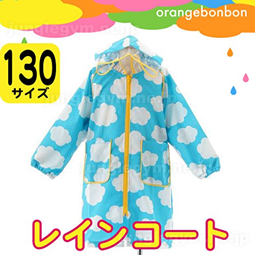オレンジボンボン(orange bon bon)雲柄レインコート:スカイブルー 130サイズ