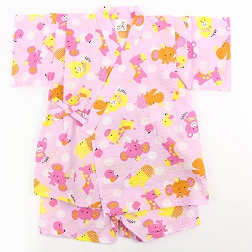 putty(プッティー)アニマル柄(ぞう・きりん・かば・くま・とり) 甚平スーツ上下 90cm ピンク 720900 日本製 綿100%