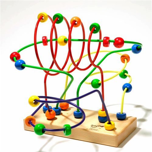 ワイヤー上をカラフルなビーズを動かして遊びます。色、形、大きさの認識力を養い、目と手の協応運動を促します。失敗のない遊びは、子どもにストレスを与えません。