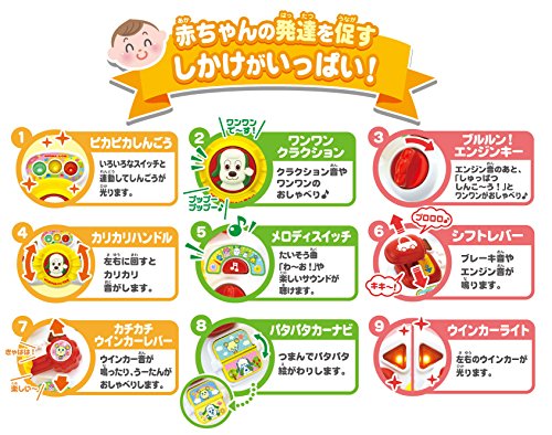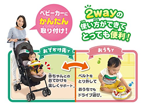ワンワンとうーたんのおでかけハンドルが登場! おしゃべり、音、メロディの15種類の音声が内蔵しており、9種類のしかけで遊べます。 おでかけ先で赤ちゃんのおでかけを楽しくサポートします。 おうちでベルトをとり外しておうちでもドライブ遊びが楽しめます。 2WAYの使い方ができてとっても便利!