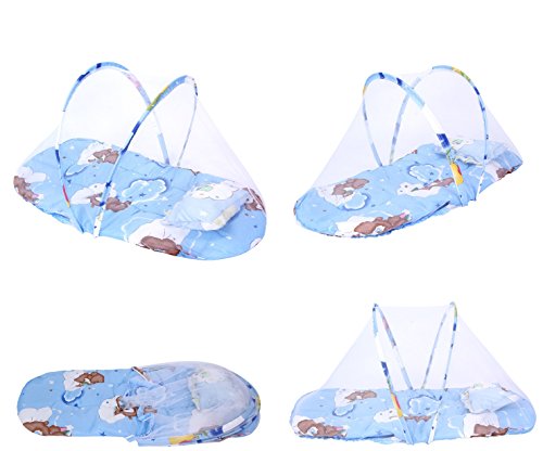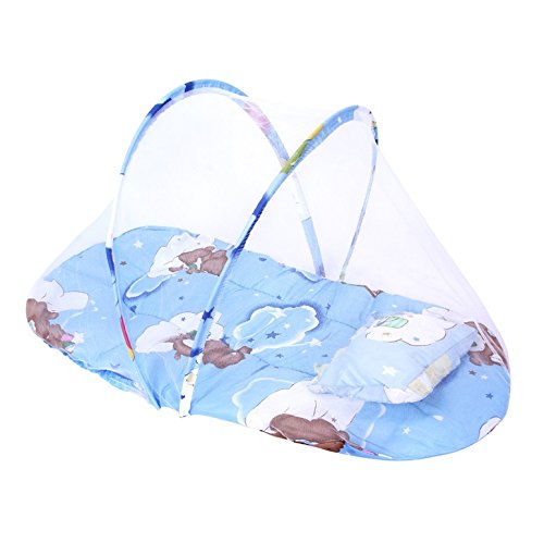 (ジョヒ)JOHIベビー用 幼児 折りたたみ 蚊帳 トラベルベッドテント 便利 ポータブル 綿マットレス 男女共用 (ブルー蚊帳+敷布団+枕)