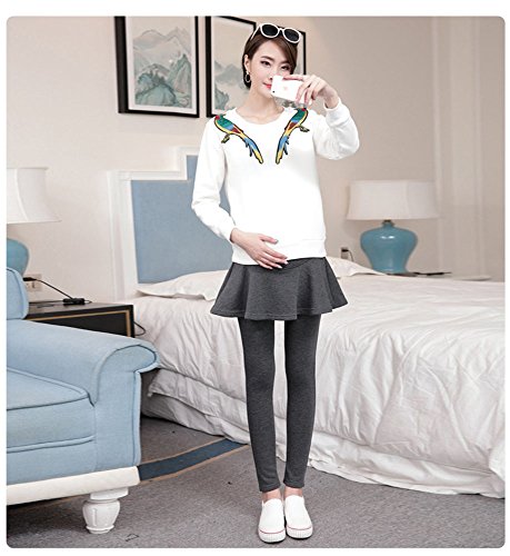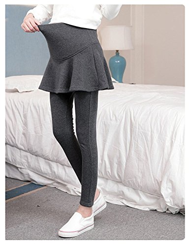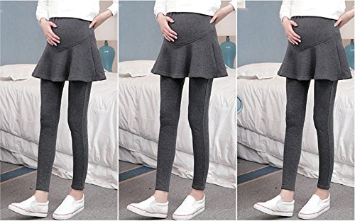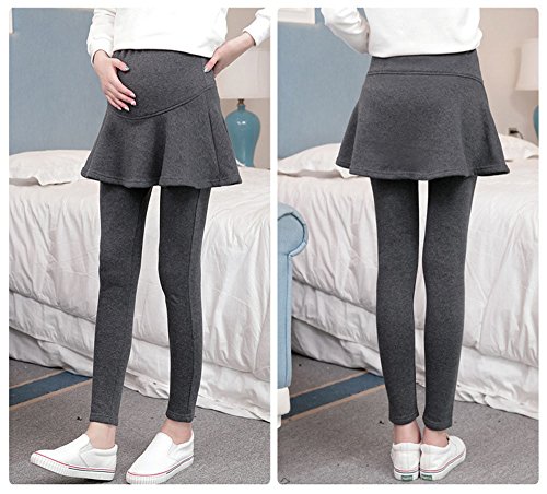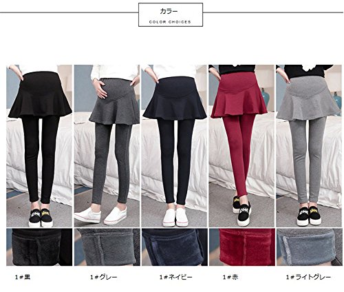 マタニティ レギンス スカート付き 厚手 スキニー パンツ スカッツ ボトムス 秋冬 ゴム ウエスト 調節可能 レディース 可愛い ズボン 履きやすい 裏起毛 2タイプ選べる (M, 1#グレー)