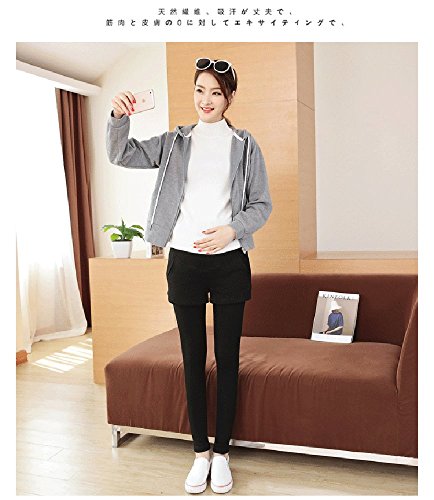 マタニティ レギンス スカート付き 厚手 スキニー パンツ スカッツ ボトムス 秋冬 ゴム ウエスト 調節可能 レディース 可愛い ズボン 履きやすい 裏起毛 2タイプ選べる (M, 2#ブラク)