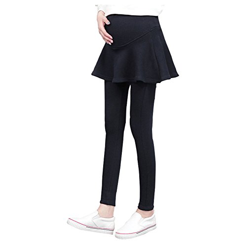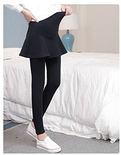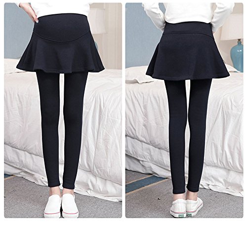 マタニティ レギンス スカート付き 厚手 スキニー パンツ スカッツ ボトムス 秋冬 ゴム ウエスト 調節可能 レディース 可愛い ズボン 履きやすい 裏起毛 2タイプ選べる (M, 1#ネイビー)