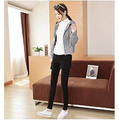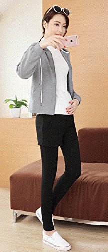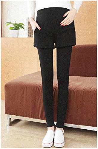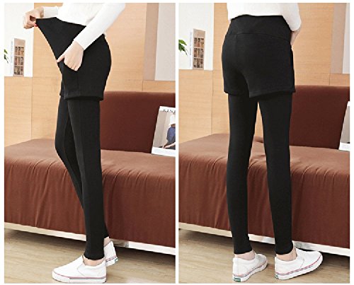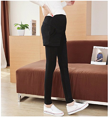 マタニティ レギンス スカート付き 厚手 スキニー パンツ スカッツ ボトムス 秋冬 ゴム ウエスト 調節可能 レディース 可愛い ズボン 履きやすい 裏起毛 2タイプ選べる (L, 2#ブラク)