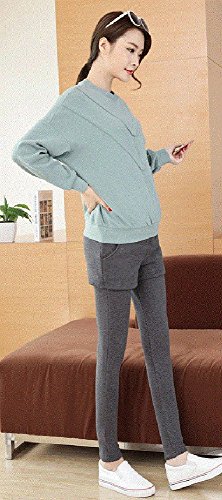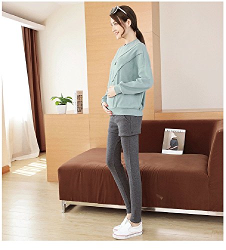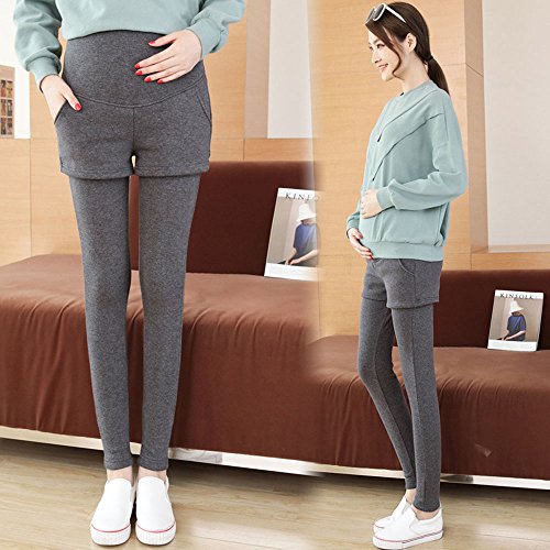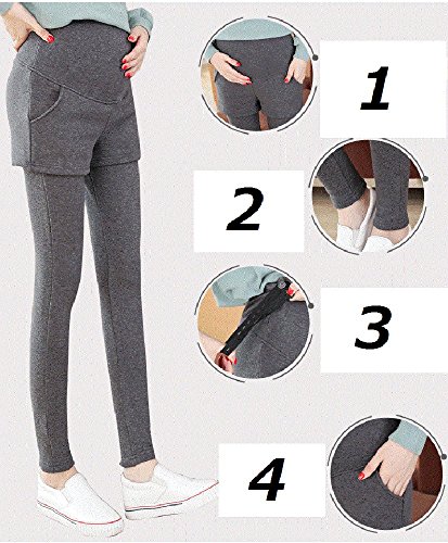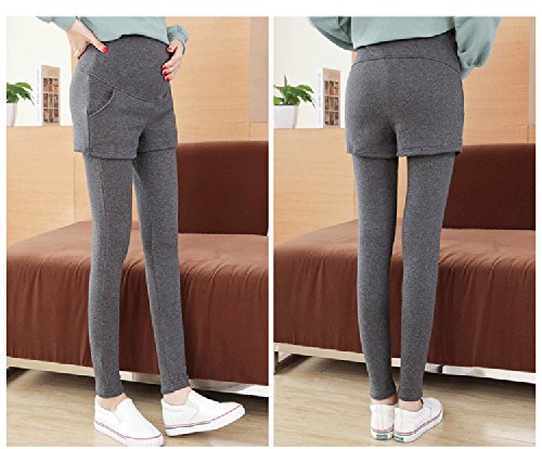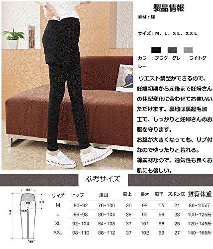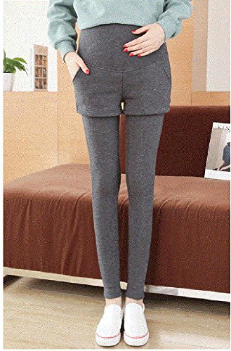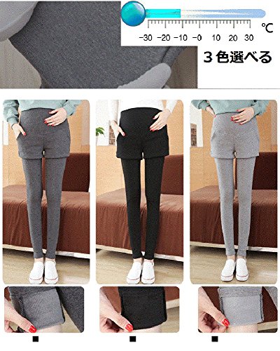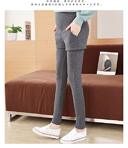 マタニティ レギンス スカート付き 厚手 スキニー パンツ スカッツ ボトムス 秋冬 ゴム ウエスト 調節可能 レディース 可愛い ズボン 履きやすい 裏起毛 2タイプ選べる (L, 2#グレー)