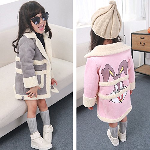 (WE●LOVE) キッズ 子供服 女の子 ベビー 秋冬 防寒 日常服 綿服コート 韓国 姫様の風 ポリエステル ウサギ ダイナソー 2タイプ選べる (120cm, ウサギ ピンク)