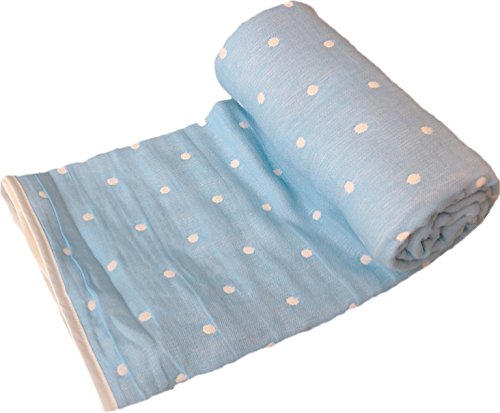 【全3サイズ5カラー】6重織り水玉ガーゼケット(ベビー/85×115cm)/サックス